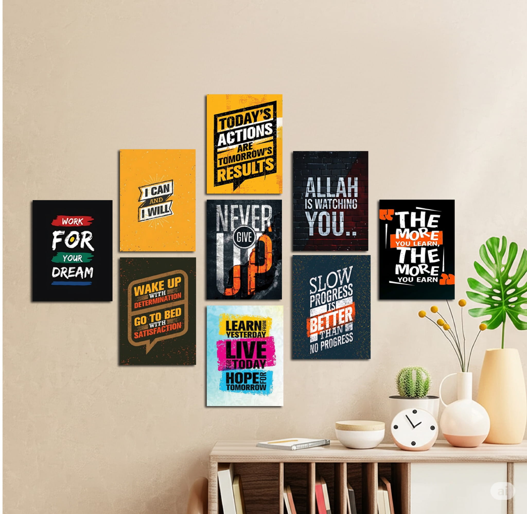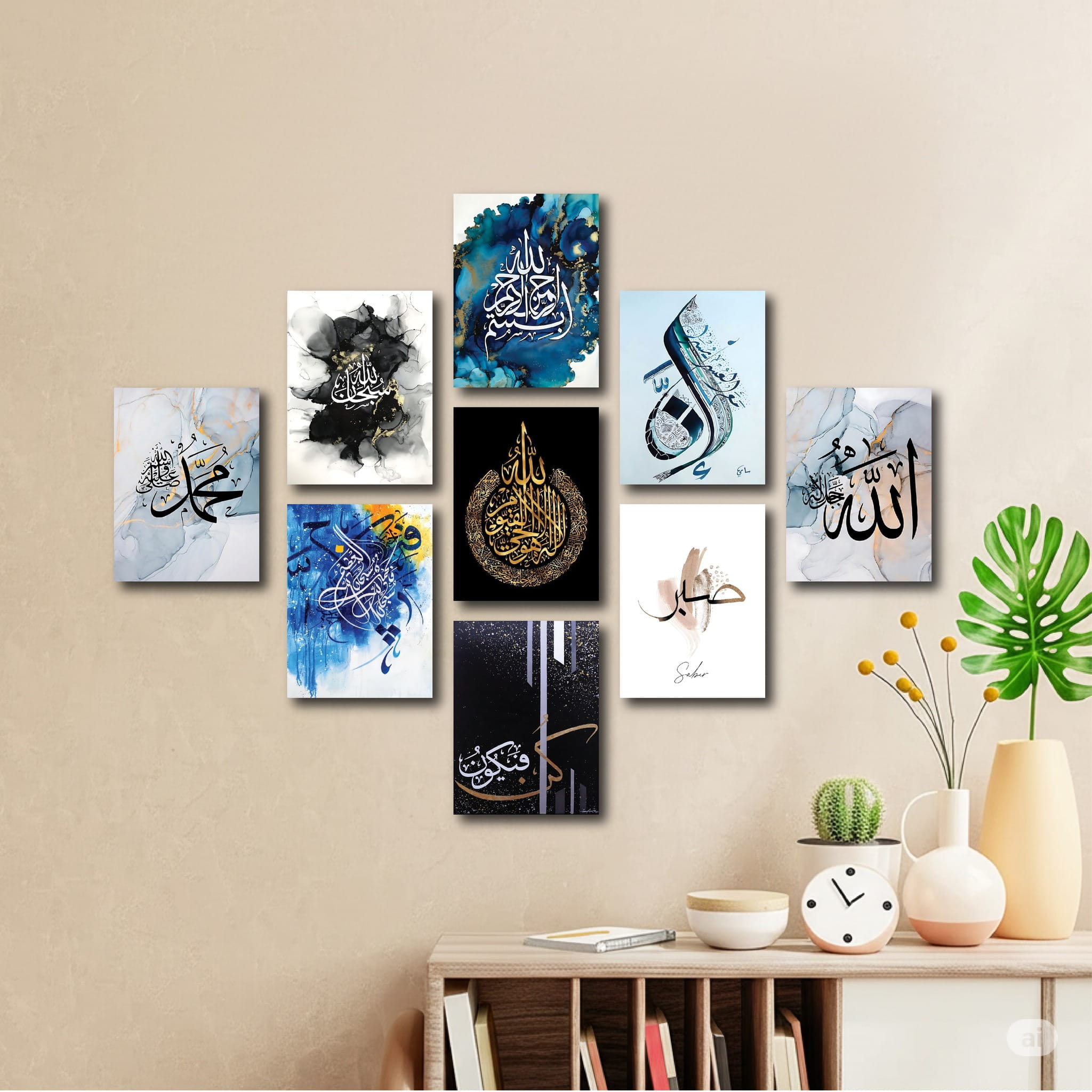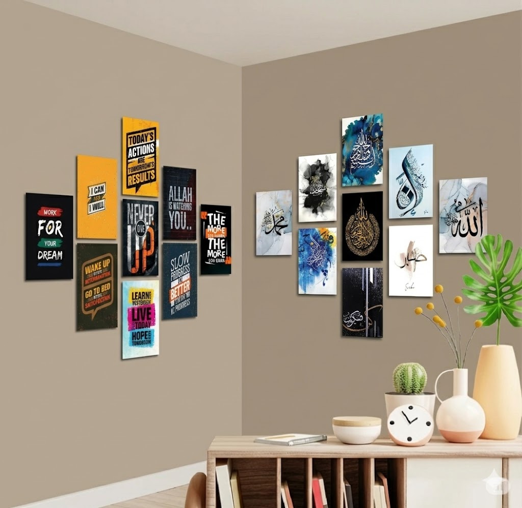 9 pieces 2 set combo Total 18 pieces Islamic and motivational quote pvc wallboard for home decoration